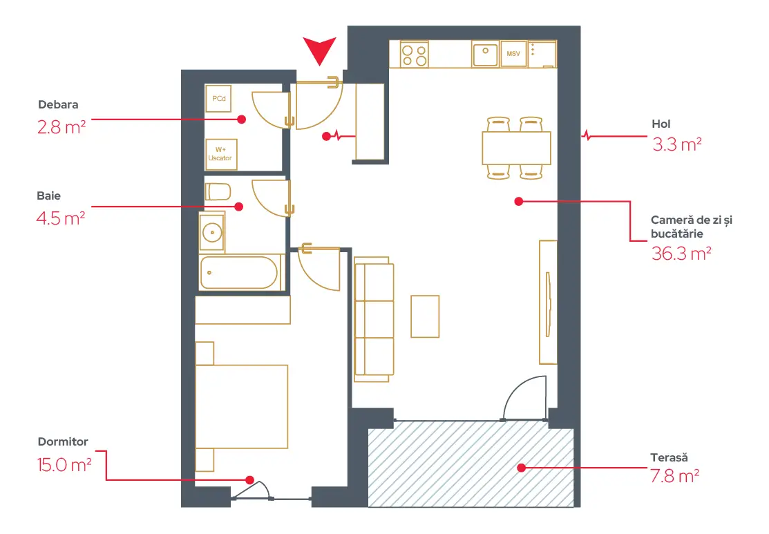 • 1. Living și Bucătărie 36.3 mp