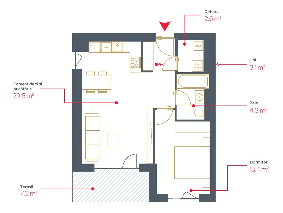 • 1. Living și Bucătărie 29.6 mp